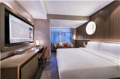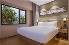 北京南站木樨園桔子水晶酒店(Crystal Orange Beijing South Station Muxiyuanl)位于北京市豐臺區東羅園,酒店位于木樨園橋東側,臨近地鐵8號線木樨園站(C出口),臨近北京南站、北京站、大興國際機場;緊鄰天壇公園、陶然亭公園、龍潭西湖公園、北京京劇院、中國評劇藝術中心、自然博物館、前門、故宮天安門;周邊有百榮商貿城、合生廣場、方仕國際黃金珠寶城、福海國際大廈、北京大紅門等購物中心、銀行等生活購物一應俱全;桔子水晶酒店屬于設計師酒店,秉承一店一設計,酒店客房屬科技引領未來的設計理念,房間配備小度音響、55寸液晶電視、電動窗簾等;客房隔音系統由清華學所設計保證安靜睡眠。木樨園, 即“桂花之園”木樨,桂花也。此次設計概念試圖以風吹花紛飛的畫面,來營造花香四溢的視覺體驗,并利用桂花 不同形色種類來呈現空間里的色彩變化,意圖打造一個帶有桂花氣質高貴、優雅的大堂空間。酒店大堂利用靜態的幾何造型,模擬桂花飄落的動態瞬 間,加上車邊鏡相互呼應反射的效果,來展現 水晶酒店高雅、不失趣味的個性.