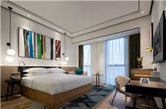 曙光薇酒店(虹橋機場國家會展中心店)(The Hotel V (Hongqiao Airport National Exhibition Center Branch))坐落于嘉定區金運路199弄11號,地處虹橋交通樞紐區,毗鄰國家會展中心。萬達廣場、華泰中心等娛樂、購物廣場簇擁酒店左右,臨近13號地鐵線,給您不一樣的美食購物體驗。距上海購物天堂徐家匯約30分鐘車程酒店交通便利。酒店隸屬曙光酒店集團旗下的高端藝術精品酒店,按高星級標準建造,獨具藝術特色和文化流行趨勢,好客曙光人將“以禮為先、以客為尊”的理念融入服務中,給您不一樣的曙光之旅。酒店整體風格簡潔時尚,以上海城市剪影藝術為特色,家具、藝術品風格迥異,融入以海派小資生活為背景的涂鴉藝術,彰顯海納百川的魔都文化。酒店擁有各類客房163間,時尚不失經典的自助餐廳,簡約優雅的中餐包廂,多功能科技化的會議室,別具一格的書吧,設有健身房、自助洗衣服務,是商務會議、旅游住宿的理想下榻之地。
