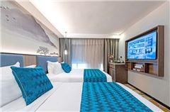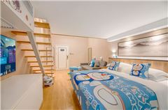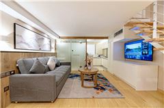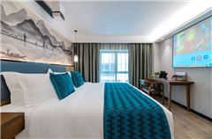 酒店客房集智能時尚、現代簡約于一體,智能系統支持手機預訂,客房的大屏投影,3D影片、德國進口音響和300兆專享光纖,令您暢游商旅e時光;特有的青磚水泥木地板,吊籃沙發鳥籠床,時尚復古,舒適清新,是您不離家也想住的酒店。