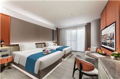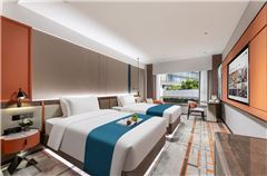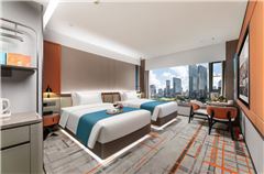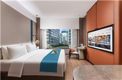From·K歡凱酒店(廣州正佳廣場體育西路地鐵站店)(From·K Hotel (Guangzhou Tianhe Zhengjia Plaza Tiyuxi Road Metro Station Branch))坐落于廣州市天河區天河路123號廣州天河購書中心的七層、九層,是與城市購書中心共生的設計型酒店,臨近廣州體育中心、太古匯,擁有超高出行方式,三線地鐵樞紐,機場/高鐵站30分鐘直達,5分鐘步行可達天河城、時尚天河、正佳廣場等大型商場和商業區,酒店配備洗燙烘干自助洗衣房、健身房、自助早餐廳、咖啡廳等。客房配備全棉舒適的床上用品、獨立冰箱、智能客控、獨立空調、超大化妝鏡,高速互聯網絡,致力于為旅客提供滿意的住宿體驗,酒店擁有76間智慧客房,有寬敞明亮的豪華大床房、獨特城景花園大床房等,多種智能房型可選,滿足您的不同住宿需求。