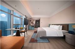 CityNote希諾酒店(廣州科學城地鐵站店)(CityNote Hotel (Guangzhou Science City Metro Station Branch))坐落于黃埔區科學城核心商圈——創興港·AI智谷,由創興港集團與壹隅酒管聯合打造的高空網紅精品酒店。以高空城市落日觀景窗為亮點,融合輕質美學與社區文化,為賓客提供高顏值、有格調的旅居體驗。 酒店交通網絡四通八達,周邊政企資源豐富,毗鄰黃埔區政府、大灣區行政中心、南方電網總部等核心機構,交通便捷,臨近高速出口可快速通達廣州城區及廣交會場館,地鐵公交網絡完善。商業配套齊全,萬達廣場、寶能演藝中心等近在咫尺,同時坐擁天河濕地公園、玉巖書院及多個森林公園的天然氧吧環境,完美兼顧商務出行與休閑旅居需求,是差旅與度假的理想之選。 酒店擁有溫馨客房,配置600㎡潮流公區,包含自助餐廳、高空酒吧、專業健身房、洗衣房、會議室等功能配套;加入屬地文化氛圍,從體感夢百合零壓床墊、天然溫和洗護,到AI語音、智能客控等智能化體驗,為客人提供一次舒適優質的旅程。 酒店旨在為賓客提供高顏值、自在、有格調、接地氣的產品服務,在設計中融入潮流、輕質、美感、社區等豐富文化元素,為你加載一段嶄新美好的城市生活社區體驗。