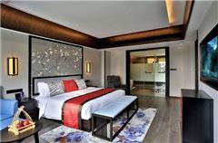 酒店將具有亙古傳奇色彩的園林景色以抽象的藝術形式創意呈現,與蘇州中心一體矗立金雞湖畔,連接蘇州的古典與現代,地理位置上佳。中國結、蘇繡、亂繡、陶瓷扇、綢緞墻都是酒店裝修風格的展現。