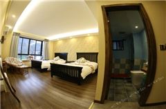 “山海經”秉承著“大自然、大健康”的理念,裝修上采用木質元素和天然材質,搭配活躍色彩。15個不同創意的客房,由老板女兒設計,各具特色,頗具視覺舒適感,與店內諸多書畫名家的畫作相得益彰。獨棟建筑,靜謐私密,墻面均由硅藻泥噴涂。
