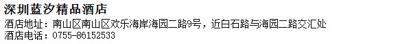 酒店地址:深圳 南山區 南山區歡樂海岸海園二路9號,近白石路與海園二路交匯處