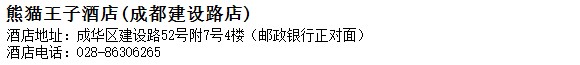 酒店地址:成都 成華區 建設路52號附7號4樓(郵政銀行正對面)