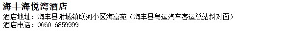 酒店地址:海豐 海豐縣 附城鎮聯河小區海富苑(海豐縣粵運汽車客運總站斜對面)