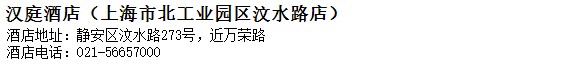 酒店地址:上海 靜安區 汶水路273號,近萬榮路