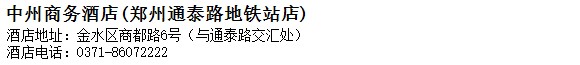 酒店地址:鄭州 金水區 商都路6號(與通泰路交匯處)