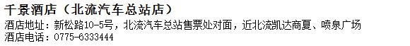 酒店地址:北流 新松路10-5號,北流汽車總站售票處對面,近北流凱達商夏、噴泉廣場