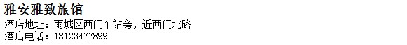 酒店地址:雅安 雨城區 西門車站旁,近西門北路