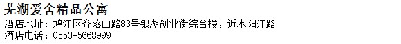 酒店地址:蕪湖 鳩江區 齊落山路83號銀湖創業街綜合樓,近水陽江路