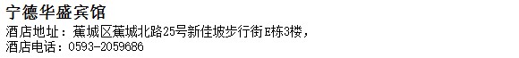 酒店地址:寧德 蕉城區 蕉城北路25號新佳坡步行街E棟3樓,