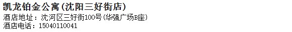 酒店地址:沈陽 沈河區 三好街100號(華強廣場B座)