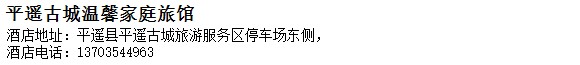 酒店地址:平遙 平遙縣 平遙古城旅游服務區停車場東側,