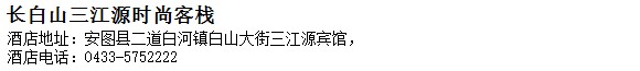 酒店地址:安圖 安圖縣二道白河鎮白山大街三江源賓館,