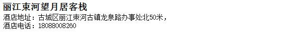 酒店地址:麗江 古城區 麗江束河古鎮龍泉路辦事處北50米,