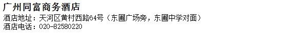 酒店地址:廣州 天河區 黃村西路64號(東圃廣場旁,東圃中學對面)