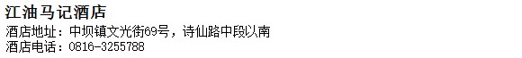 酒店地址:江油 中壩鎮文光街69號,詩仙路中段以南