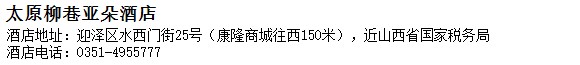 酒店地址:太原 迎澤區 水西門街25號(康隆商城往西150米),近山西省國家稅務局