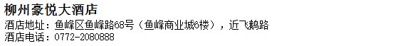 酒店地址:柳州 魚峰區 魚峰路68號(魚峰商業城6樓),近飛鵝路
