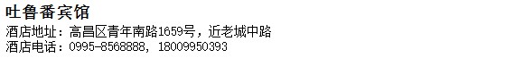 酒店地址:吐魯番市 高昌區 青年南路1659號,近老城中路
