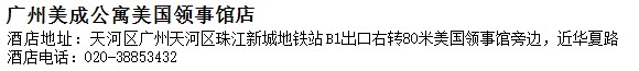 酒店地址:廣州 天河區 廣州天河區珠江新城地鐵站B1出口右轉80米美國領事館旁邊,近華夏路