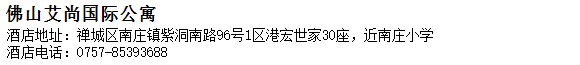 酒店地址:佛山 禪城區 南莊鎮紫洞南路96號1區港宏世家30座,近南莊小學