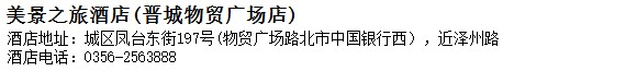 酒店地址:晉城 城區 鳳臺東街197號(物貿廣場路北市中國銀行西),近澤州路