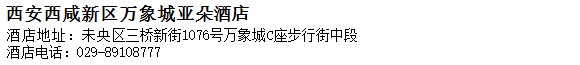 酒店地址:西安 未央區 三橋新街1076號萬象城C座步行街中段