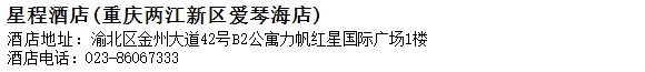 酒店地址:重慶 渝北區 金州大道42號B2公寓力帆紅星國際廣場1樓