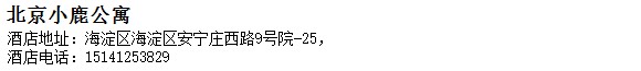 酒店地址:北京 海淀區 海淀區安寧莊西路9號院-25,