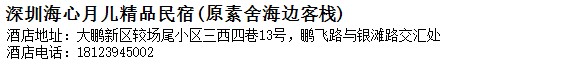 酒店地址:深圳 大鵬新區 較場尾小區三西四巷13號,鵬飛路與銀灘路交匯處