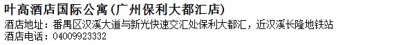 酒店地址:廣州 番禺區 漢溪大道與新光快速交匯處保利大都匯,近漢溪長隆地鐵站