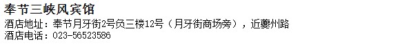 酒店地址:重慶 奉節 月牙街2號負三樓12號(月牙街商場旁),近夔州路