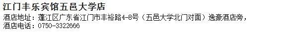 酒店地址:江門 蓬江區 廣東省江門市豐裕路4-8號(五邑大學北門對面)逸豪酒店旁,
