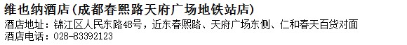 酒店地址:成都 錦江區 人民東路48號,近東春熙路、天府廣場東側、仁和春天百貨對面