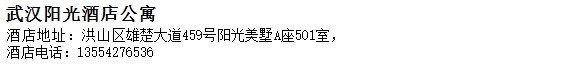 酒店地址:武漢 洪山區 雄楚大道459號陽光美墅A座501室,