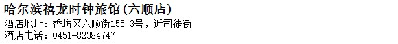 酒店地址:哈爾濱 香坊區 六順街155-3號,近司徒街