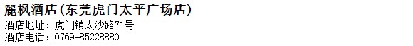 酒店地址:東莞 虎門鎮 太沙路71號