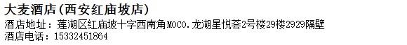 酒店地址:西安 蓮湖區 紅廟坡十字西南角MOCO.龍湖星悅薈2號樓29樓2929隔壁