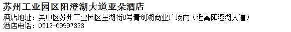 酒店地址:蘇州 吳中區 蘇州工業園區星湖街8號青劍湖商業廣場內(近離陽澄湖大道)