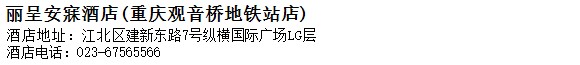 酒店地址:重慶 江北區 建新東路7號縱橫國際廣場LG層