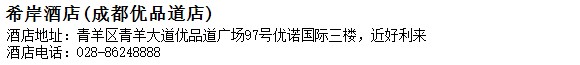 酒店地址:成都 青羊區 青羊大道優品道廣場97號優諾國際三樓,近好利來