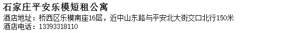 酒店地址:石家莊 橋西區 樂模南座16層,近中山東路與平安北大街交口北行150米