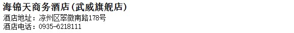 酒店地址:武威 涼州區 翠微南路178號