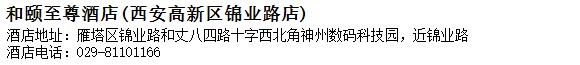酒店地址:西安 雁塔區 錦業路和丈八四路十字西北角神州數碼科技園,近錦業路