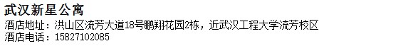 酒店地址:武漢 洪山區 流芳大道18號鵬翔花園2棟,近武漢工程大學流芳校區