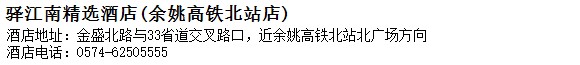 酒店地址:余姚 金盛北路與33省道交叉路口,近余姚高鐵北站北廣場方向