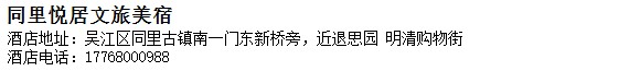 酒店地址:蘇州 吳江區 同里古鎮南一門東新橋旁,近退思園 明清購物街