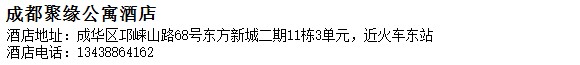 酒店地址:成都 成華區 邛崍山路68號東方新城二期11棟3單元,近火車東站